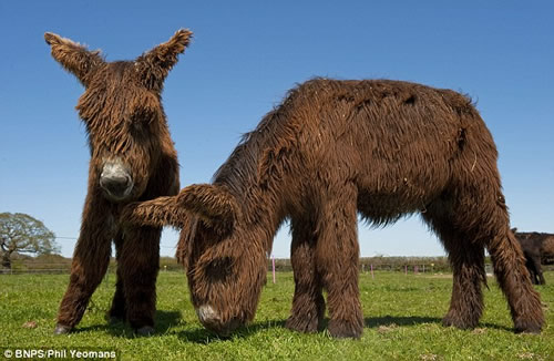如图我们看到此动物名为“Baudet de Poitou”是一种比较珍稀的驴品种,全球目前仅剩不到1000只。它身高可达到8英尺,比大部分马更大。