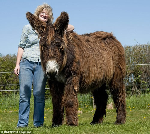 世界上最大的一只Baudet de Poitou生活在美国德克萨斯州的一个农场上,身高5英尺7英寸。英国最大的这种驴生活在林肯郡的一个农场上,从地面到耳朵尖,它的身高是8英尺。