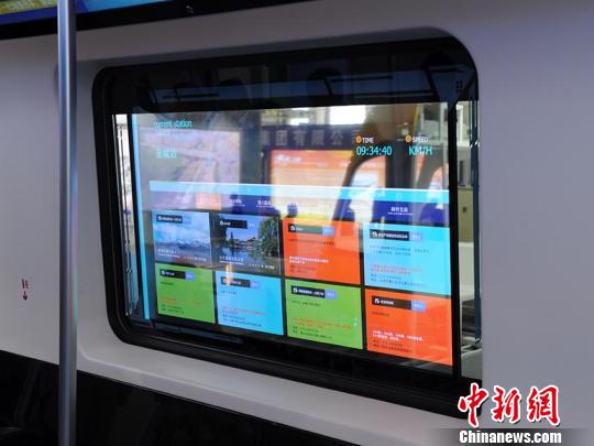 据介绍,设计者还将55寸OLED显示膜集成到车窗上,并通过智能人机交互系统,乘客可以在乘车时在线观看影音节目,同时,列车的灯光和车窗还可以根据车内环境调节明暗度。
