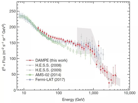 ✦首次直接探测到电子宇宙射线能谱在1TeV附近的拐折