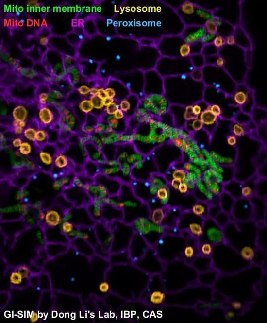 真核细胞内,细胞器和细胞骨架进行着高度动态而又有组织的相互作用以协调复杂的细胞功能。观测这些相互作用,需要对细胞内环境进行非侵入式、长时程、高时空分辨、低背景噪声的成像。