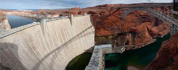 受到胡佛水坝成功的启发,为了满足未来的用水需求,根据1956年《科罗拉多河流蓄水工程法案》和1968年《科罗拉多河谷工程法案》,美国授权修建格伦峡谷水坝。格伦峡谷大坝坝高216m,始建于1956年,1964年开始运行,历时17年完成蓄水达到正常蓄水位。大坝形成的水库为鲍威尔水库,库容仅次于米德湖水库,是美国的第二大水库。