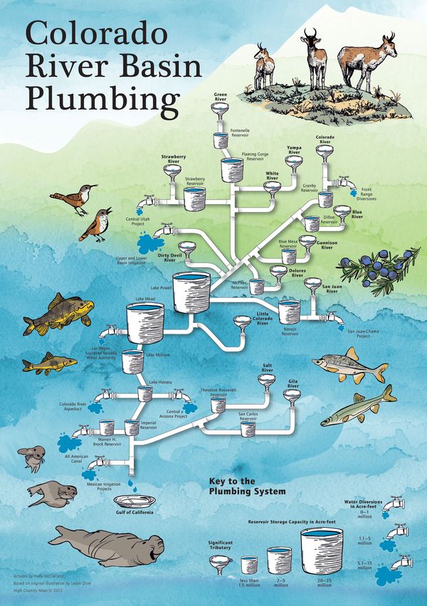 科罗拉多河流域的大坝建设对下游的好处是控制洪水,以保护下游的城市和农业免受洪水的破坏。格伦峡谷大坝等水坝的建设,能够蓄水和调节不规律的来水径流,并保证下游用水户的可用水量。