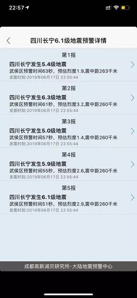 而居住在成都高新区的刘先生则表示,地震发生前他正在看电视,突然手机不停的发来信息,一看都是地震预警信息,连震级都显示出来了。与此同时,电视上也出现了关于地震的预警提示信息。