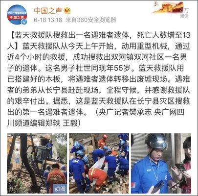 下午一点多,@中国之声 报道称蓝天救援队搜救出一名遇难者遗体,死亡人数增至13人。