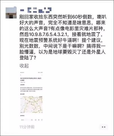 不过,震感最强的地方,还是朋友圈。地震刚刚发生,朋友圈立即被各种消息刷屏。其中一条地震预警的视频,更是引起众多网友转发。