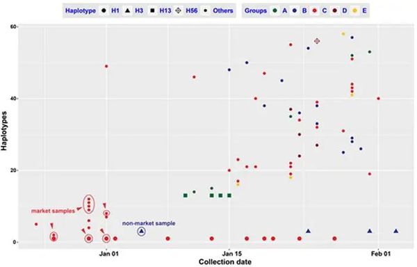 于是中国科学院科技论文预发布平台从基因测序的角度给我们带来了这篇科学论文,直接推翻了华南海鲜市场是第一案发现场的结论。