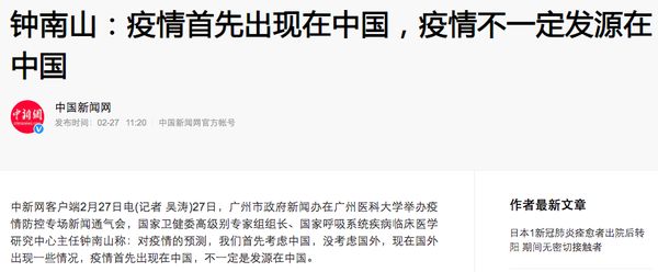 今天,钟南山院士也明确提出“疫情不一定是发源于中国”。