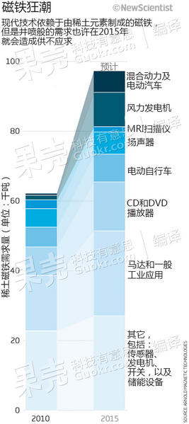 预计到2015年,全球产业界对磁铁的需求可能就会造成供不应求的局面。图片来源:《新科学家》
