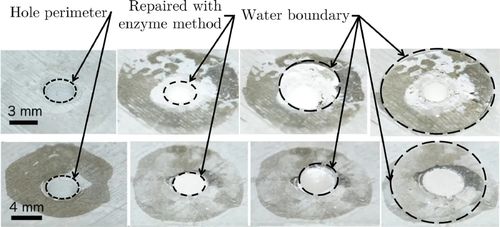 经过一天的时间之后,3毫米的裂缝和1.5毫米的小洞都复原如初。