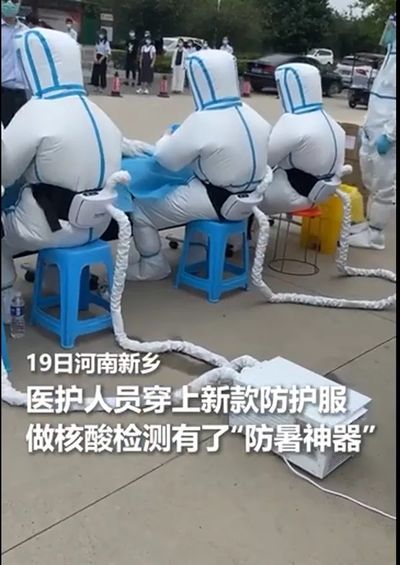 虽已立秋,气候依然炎热抗疫一线医护尤其是核酸检测员常常被严实的防护服包裹得密不透风,闷热难耐日前,一款新型防护服开始在许多地方应用圆鼓鼓的充气外表看起来十分可爱网友点赞:……