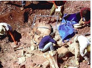 以现在发现的暴龙化石为例,暴龙约有3层楼高。在所有的石雕里,恐龙虽然还是比人大,但比例并不悬殊,三角龙对于人来说,好像是现在人与牛的比例。这说明了什么?是不是有可能在恐龙时代就生存有巨人?