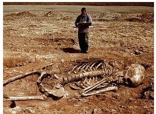 让考古队员感到震惊的是,他们在3座古墓里发现了3具非同寻常的骸骨—-3具“巨人”的骨架。之所以称他们是巨人,是因为这些骨架的身长都在2.8米以上,而普通的当地男性身高平均仅为1.49米。