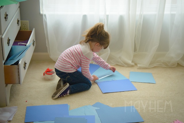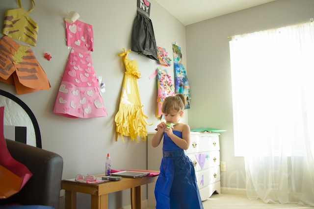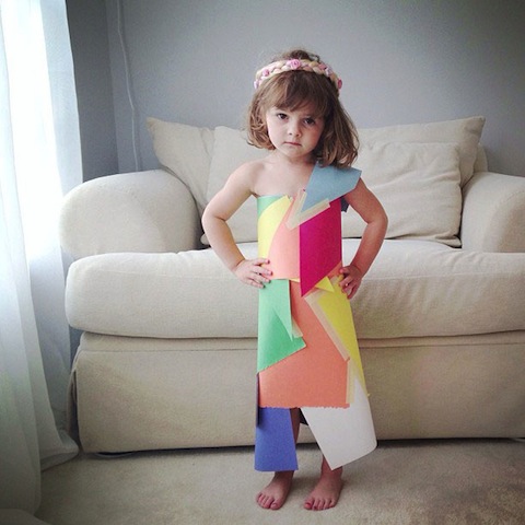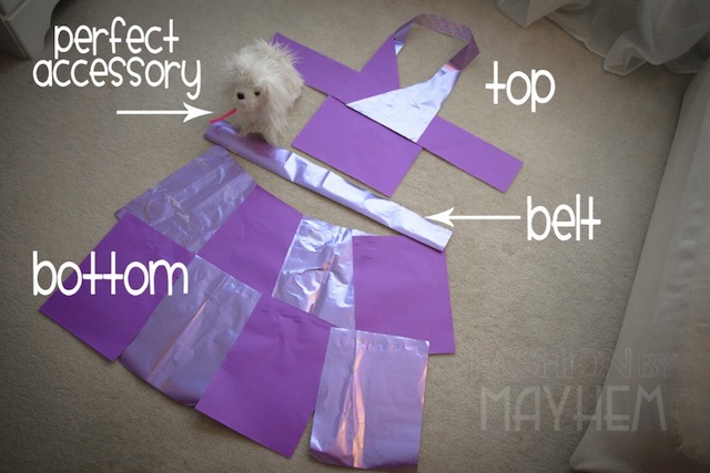 通常,一件衣服由Mayhem设计好之后,妈妈会帮忙一起粘贴起来,有时需要半个小时或一个钟头,有时则要花上三四个钟头,毕竟,对于一个专注力时间有限的四岁孩子来说,独立完成整件作品还是相当有难度的。