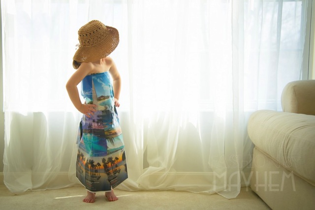 四岁的Mayhem拥有纯真甜美的笑容和无与伦比的创造力!自家的客厅窗前就是她一个人的超级秀场!
