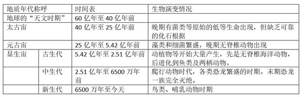 地质学家们曾列出这样一张地球上产生生命的“时间表”: