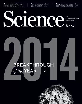12月18日,美国《科学》杂志公布其评选出的2014年十大科学突破,人造探测器首次登陆彗星(“罗塞塔”任务)当选本年度最重要的科学突破。