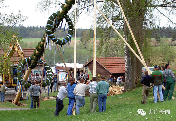 此外,在“五一”这一天,德国许多乡镇都有竖“五月树”的习俗。一般由村里年轻力壮的未婚青年们同心协力将一棵高大笔直、粗壮有力的桦树干竖起。“五月树”一村比一村高大。未婚少女们为“五月树”配上漂亮的装饰,祈愿来年得到如意郎君的喜爱。5月1日一大早,许多未婚女青年一开门就看到了村上未婚男青年放置门前表达爱意的“迷你”心状花环。这一天,淳朴的居民早早就带上孩子,穿上传统的服装围着“五月树”翩翩起舞。很久以前,人们还要在田间跳舞,以将人类强大的生儿育女的繁衍能力传向田间。