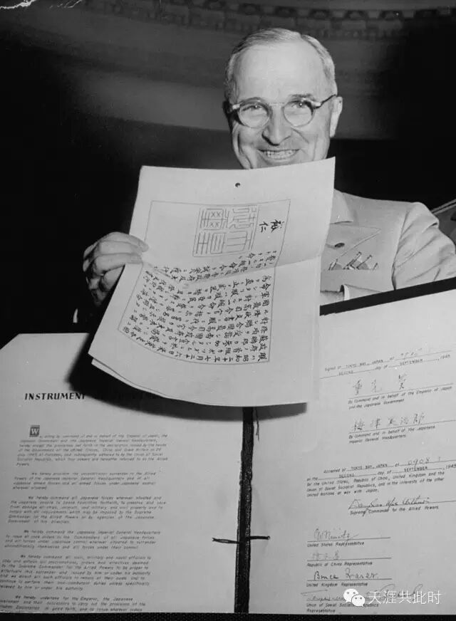 不久,1945年9月2日,美英中法等九国代表于停泊在东京湾的美国海军战舰“密苏里”号上接受日本投降。日本外相重光葵以及日军参谋总长梅津美治郎等代表日本天皇和日本政府在投降书上签字,同意接受《波茨坦公告》中所列的全部条款,无条件地接受将台湾在内的所掠夺的领土交出。
