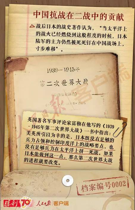 如果觉得这些历史重要当事人的话说服力还不够,那我们再看看史实。太平洋战争爆发后,日本陆军主力被困中国战场,派往太平洋战场的仅10个师团。到1943年11月美军在太平洋战场开始战略反攻时,日本还有64%的陆军和45%的航空兵被牵制在中国战场。