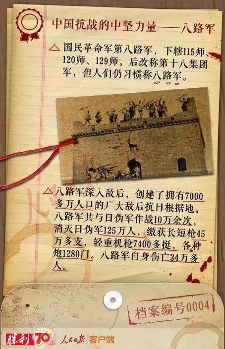 在抗日战争中,中国军队共计毙俘伤日军150余万人,占到日军在二战中伤亡总数的七成以上;日本战败后,向中国投降的日军总数为128万余人,超过在东南亚以及太平洋各岛屿日军的总和,是当时日军总数的一半以上。