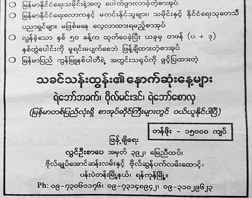另外还有一个书价问题值得讨论。当年《德钦丹吞的最后日子》分两卷出版,每卷缅币5元共合10元。现在则合订成一本书出版,定价是15000元。47年的时间过去了,书价大涨1500倍,这说明了什么问题?从另一个角度来看,《德钦丹吞的最后日子》在今天还能拥有一定的市场,这可能也是一个重要的原因了。