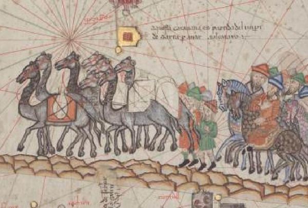 图5《卡特兰地图集》 (局部)中向中国进发的驼队