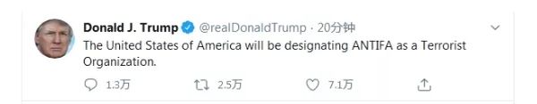 美国将认定极左翼激进势力ANTIFA为恐怖组织。