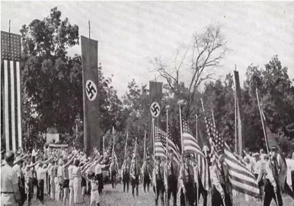 美国有一批人,仿照德国建立了纳粹集团“德美同盟”。德美同盟在全美各地建立了多达69个不同的纳粹团体,还组建了一支上千人的冲锋队。