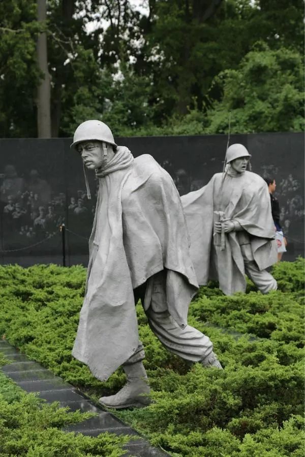 在美国纪念朝鲜战争的地方,立着一群美军士兵的雕像,这些美国大兵神情萧索,目光迷茫,有惊恐,还有害怕,完全没有了以往那种“老子天下第一”的神态。