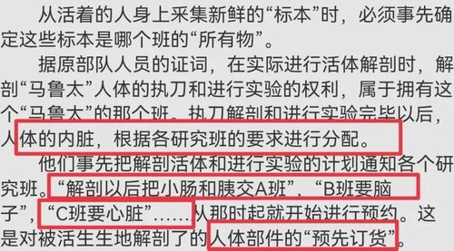 一个原731部队人员回忆当时解剖情景时这样说道,“少年并不是‘马鲁太’……孩子并没有进行什么抗日运动。后来,我才知道解剖他是为了取得一个健康的男少年的内脏。因此,这个少年就活活地被解剖了……”