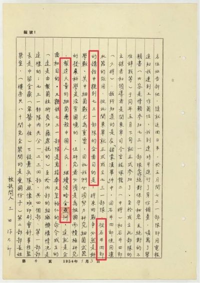 6月4日,侵华日军第七三一部队罪证陈列馆给中国历史研究院官方微博提供了731部队成员上田弥太郎的口供原稿。该供述档案现存于中央档案馆,是十分宝贵的第一手档案资料。