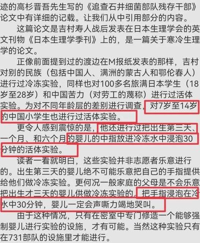 更过分的是,吉村还曾就自己进行冻伤实验问题发表过学术论文。甚至连刚出生几天的婴儿,他都不放过。