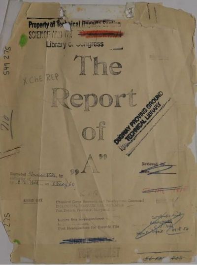 (上图为731部队进行人体实验的炭疽菌实验报告封面图,上面有德特里克堡基地的字样。侵华日军第七三一部队罪证陈列馆供图)
