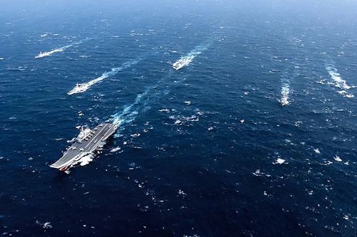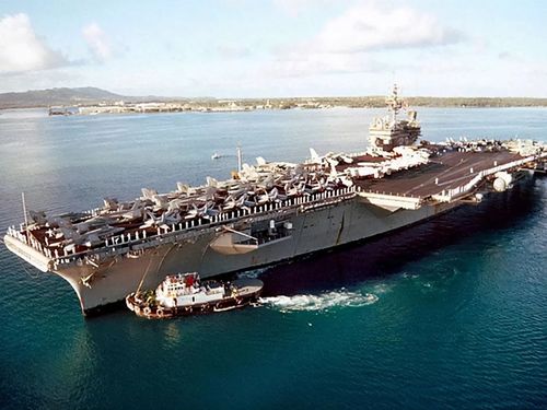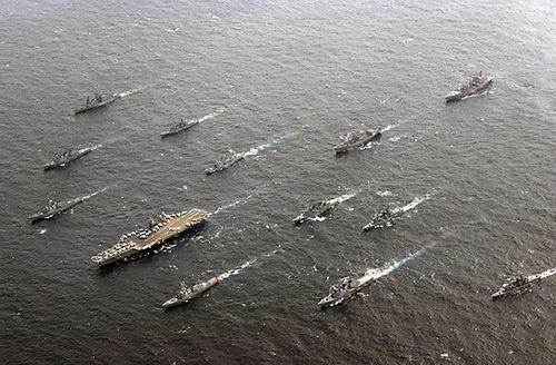 一般情况下,航母战斗群包括一艘航母、两艘巡洋舰、两至三艘驱逐舰、一艘护卫舰、一至两艘攻击核潜艇和一艘补给舰。