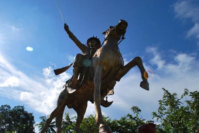 得努布小镇的班都拉将军雕像,这里是他抗击英军时牺牲的地方。(图片来源:朱诺)