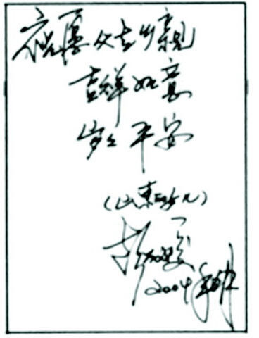 “祝愿父老乡亲,吉祥如意,岁岁平安。(山东的女儿)彭丽媛 ”—彭麻麻2004年写给山东父老乡亲的话。