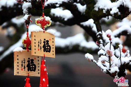 瑞雪压枝腊梅问春 千年古刹踏雪寻梅