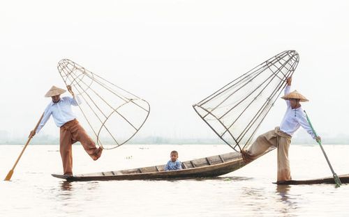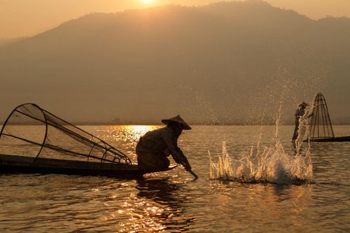 “捕鱼是门技术活”,这里说的不是在哪里捕、如何捕、捕多少的技术,而是缅甸一个居住在茵莱湖畔的茵达族的渔夫们的技术:他们用腿划桨,并以一种奇特的方式捕鱼,却在船头保持着奇妙的平衡。