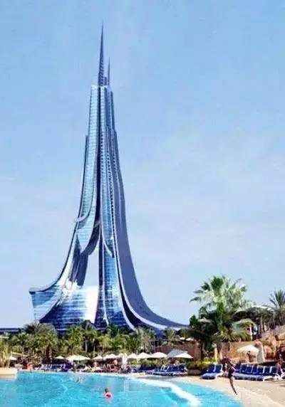 迪拜的钻戒旅馆。它有天蓝色月亮神的感觉,这个设计可以说是疯狂透顶,每个分支都是一个房间,你如果去住的话,记得时时背着降落伞。