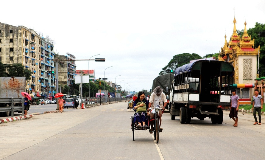 在寺庙外,见到了这种双向乘坐的三轮车 价格与出租车差不多,1500缅币跑一趟(约10元人民币)。