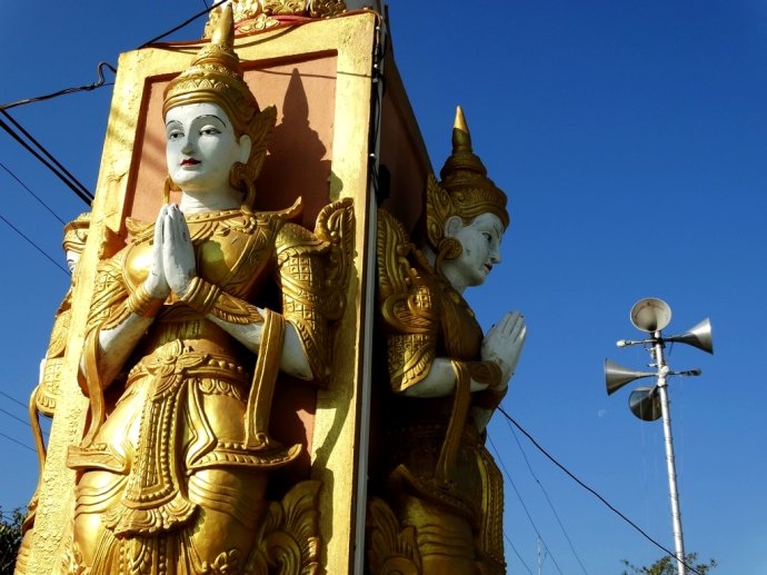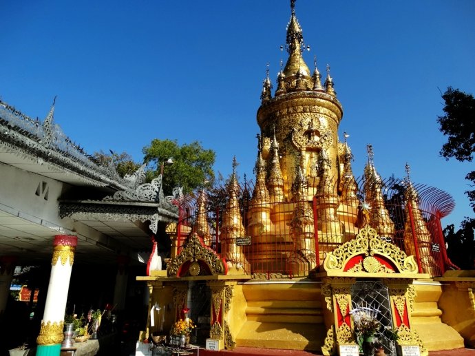 金眼镜佛塔(Shwemyetman Paya)位于缅甸卑谬Shwedaung镇,是当地一处佛教圣地,这里供奉着一尊佩带金色眼镜的佛像,庄严的大佛配上硕大的金色眼镜,充满亲切、智慧之感。