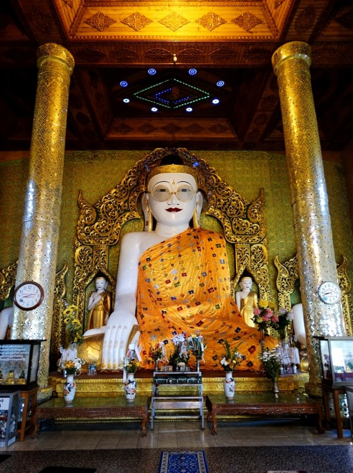 现在大佛所戴的金眼镜则是2000年居住在仰光的印度籍富商所捐赠,为纯金框镜片,定期清洗。