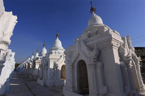 这是曼德勒山下的成片白塔,肯定一眼就能看见,白塔群的中间是一座高大的金塔,身处成群白塔之中,微风吹过塔尖的风铃,声音如同天籁,无章却有律。