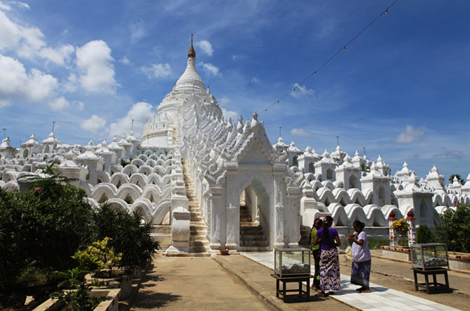 敏贡古城可看的古迹不多,但都货真价实值得一看。而个人认为最值得一到的地方,是距敏贡塔四、五百米远的辛比梅宝塔(Hsinbyume Pagoda)。
