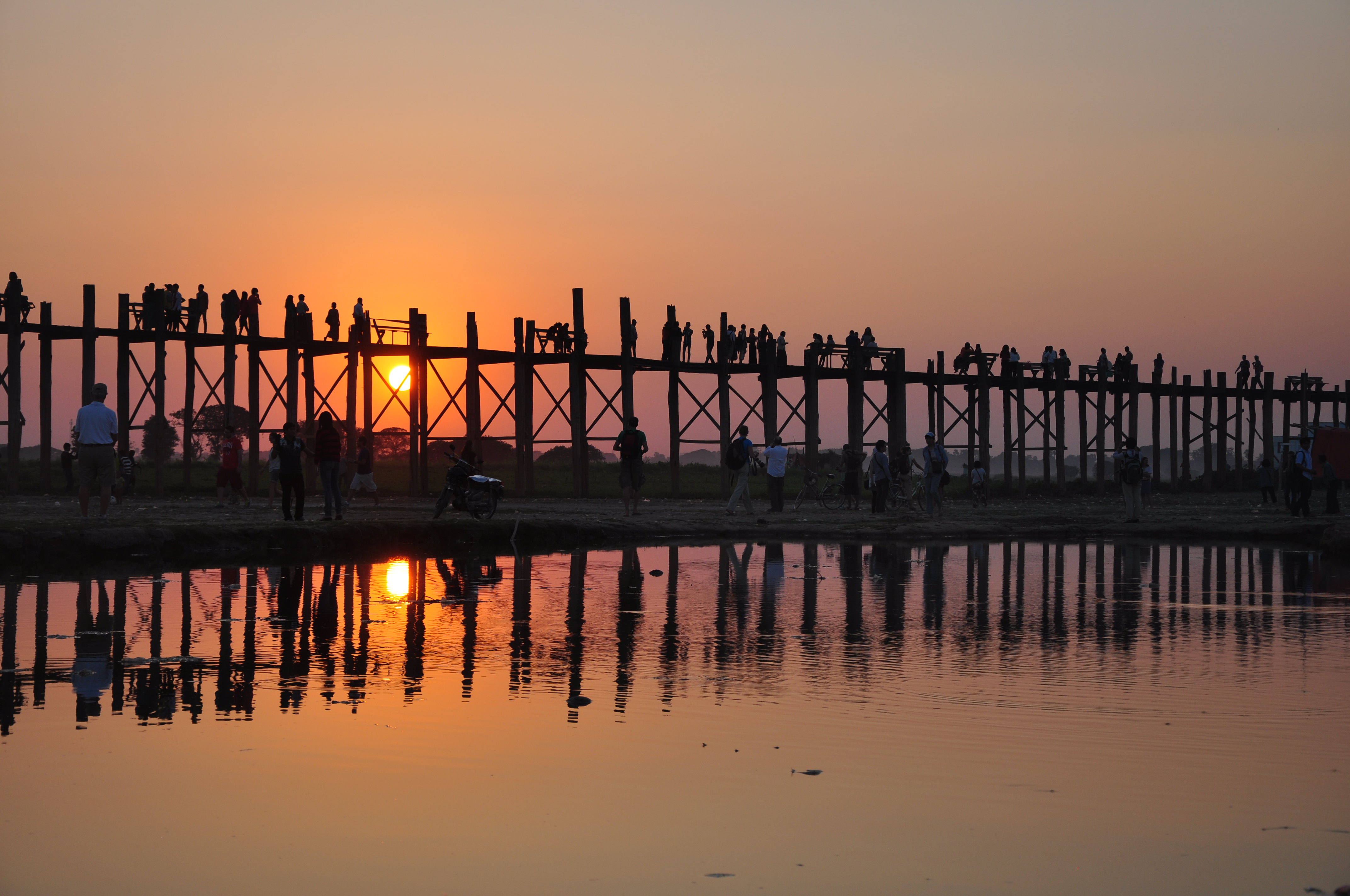 从曼德勒出发开启伊洛瓦底江的湖光山色之旅。在昔日的首府阿玛拉普拉有一座乌本桥,您可以从这里下船,沿着这座桥越过浅水湖,欣赏湖边的群山,在落日余晖下留一张最美的纪念。