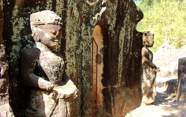 阳光穿过岩洞的洞壁,投射于洞中的佛像之上,仿佛见证了神迹的光辉。石窟藏在与外界隔绝的山洞之中,穿行其间,好似漫步于世外之境。此外,这里还经常看到成群结队的猴群出没,为景区增添了一点人间生灵的趣味。