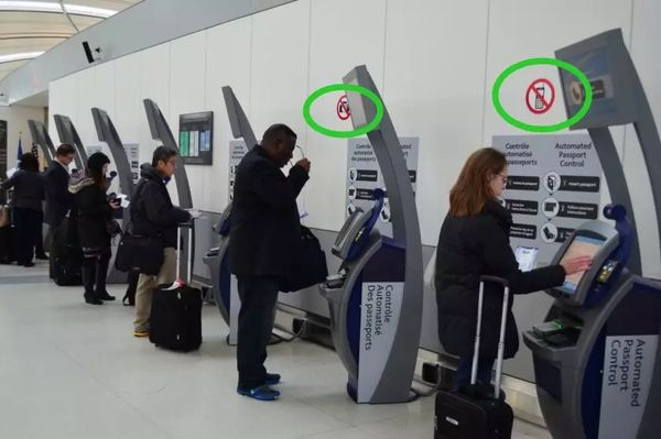 不仅仅是过海关的时候。只要墙上贴上这张纸。这个区域内,你都不能掏手机打电话,拍照发朋友圈等等都不行。
