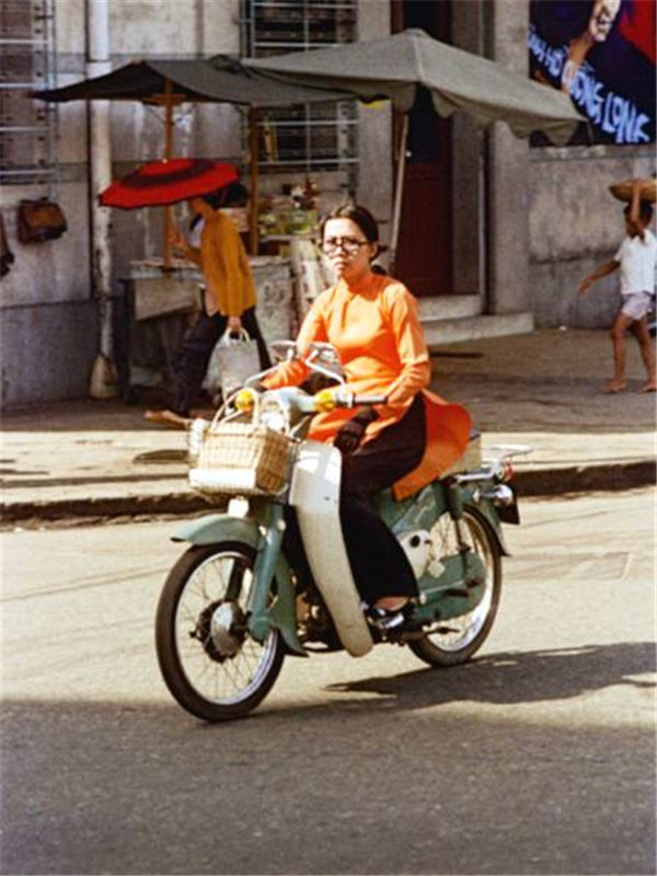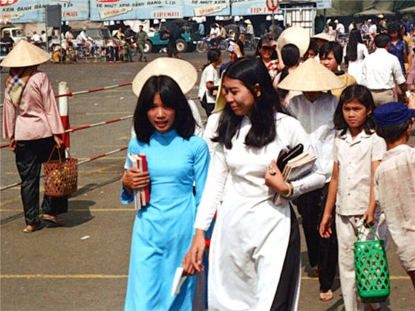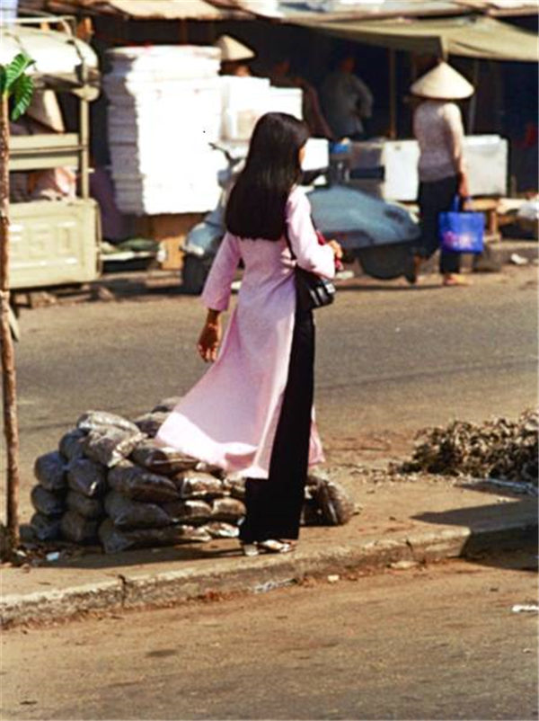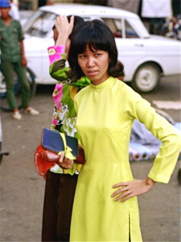 越南旧影1972年,西贡街头的奥黛女郎们