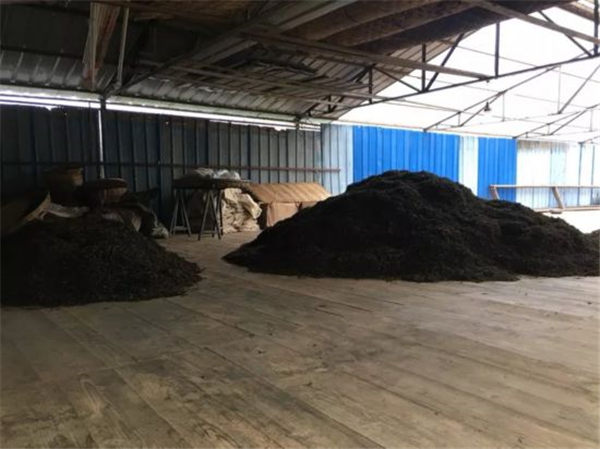 一波三折后终于抵达黄家寨官寨。我们直接来到官寨德凤茶厂的初制所,四处参观,初制所内设施完备,管理有序,棚内堆有两堆晒干的秋茶毛茶,香气四溢。